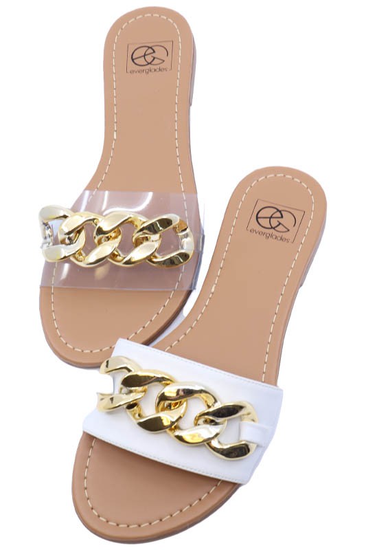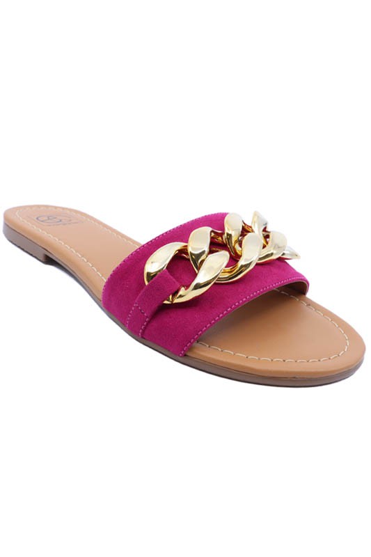 One band slide sandal with chain detail